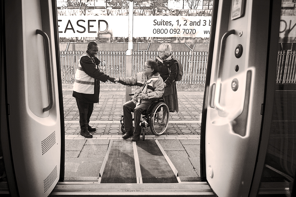 Johan Van der Dong tijdens het Passion for Freedom festival 2012 in London. Reist vanaf Station Hayes and Harlington naar het Centrum van London. ’s Avonds aankomen op het zelfde station is in een rolstoel niet mogelijk. Extra kosten £ 34,–